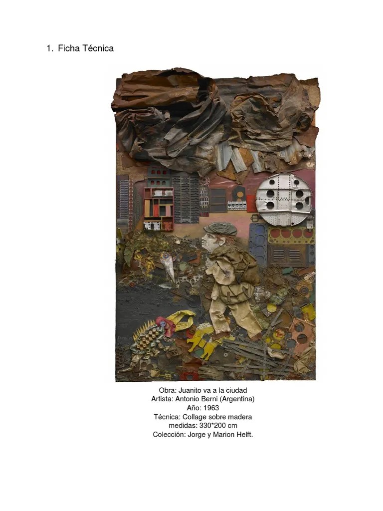 Juanito laguna aprende a leer, 1961 óleo y materiales varios sobre arpillera 210 x 300 cm colección museo nacional de bellas artes. Obra de antonio berni, el carnaval de juanito laguna, 1960. Nació en rosario (provincia de santa fe) el 14 de mayo de 1905, y murió en buenos aires el 13 de octubre de 1981. Durante sesenta años se dedicó a la pintura convirtiéndose en uno de los artistas más importantes de la argentina y de américa latina.. 13/09/2019 · antonio berni es uno de los grandes artistas latinoamericanos cuya obra tiene un fuerte compromiso social.